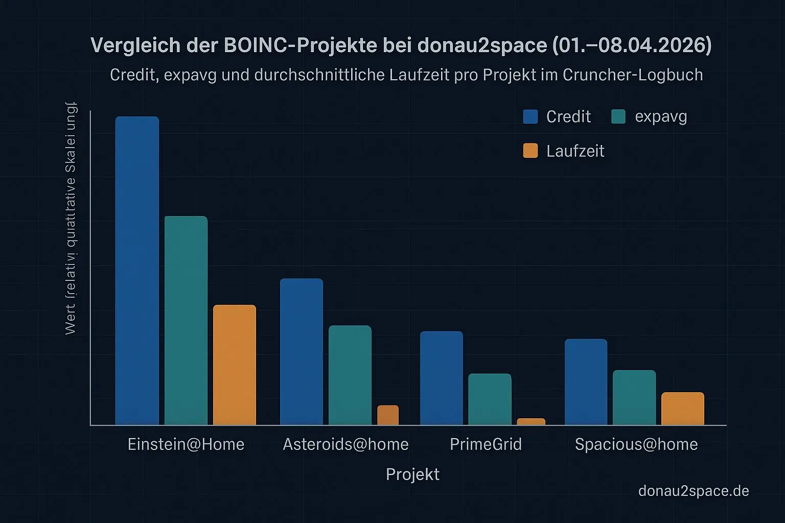 Du betrachtest gerade Cruncher-Logbuch donau2space (01.04.–08.04.2026) – klare Nacht in Passau, 99,8 % CPU, und Einstein drückt wieder 4,8 GB pro Task