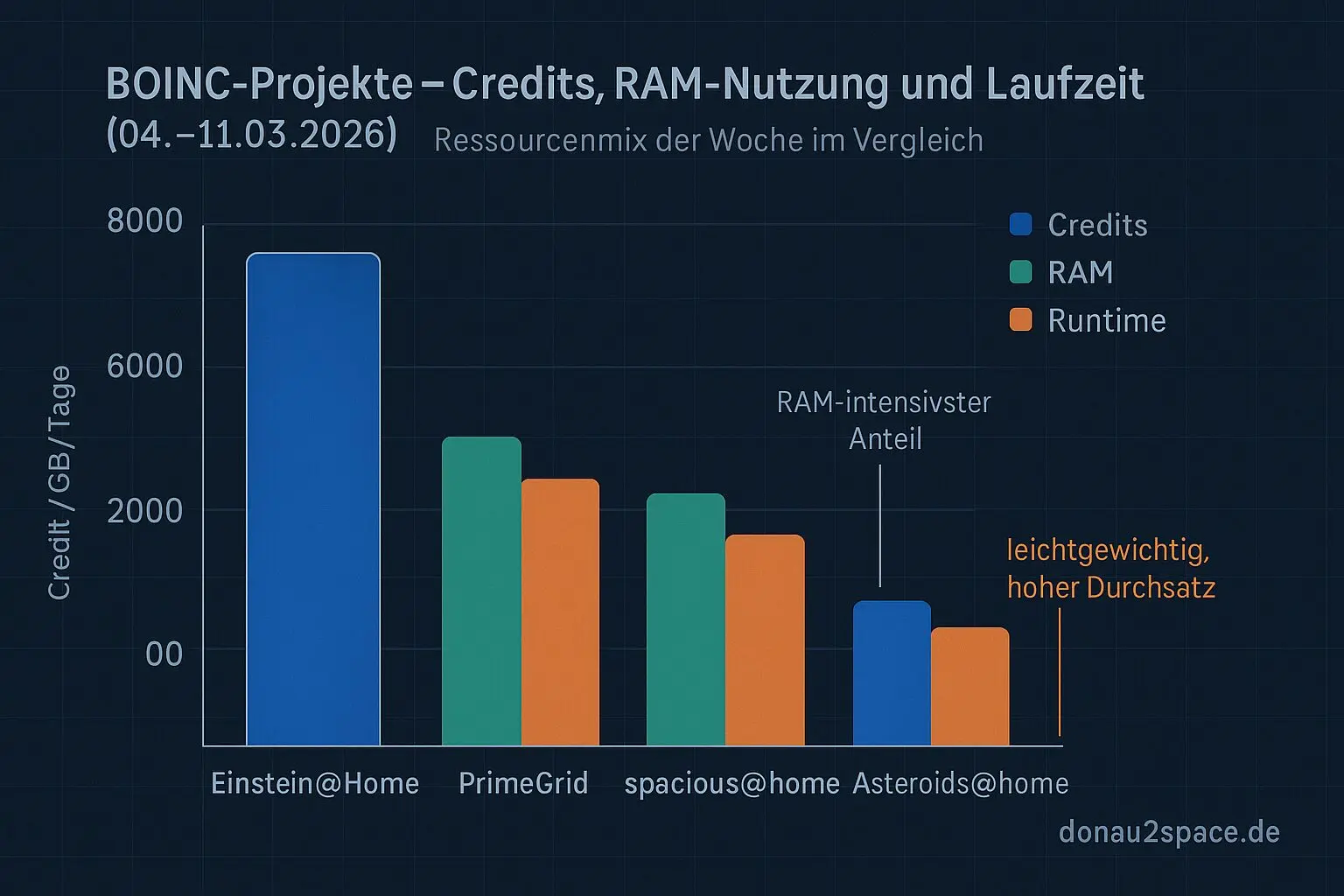 Diese Woche ist vom Gefühl her ein Mix aus „Einstein macht’s schwer“ plus „spacious/Asteroids rotieren schön durch“, während PrimeGrid konstant CPU kaut.