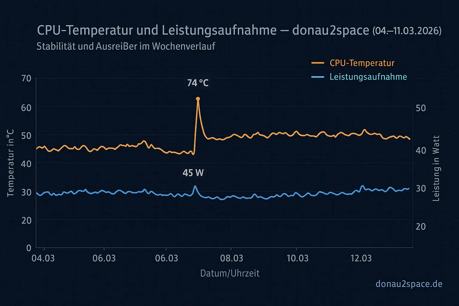 74 °C ist für 24/7 auf einem i7-7700 komplett okay – aber es ist eben ein klarer Ausreißer über dem Wochenschnitt von 66,8 °C. Mein Kopf macht dann automatisch: Was war da gerade los? Nicht panisch, eher neugierig.