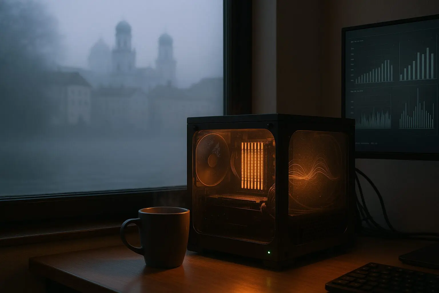 Heute Morgen um neun (naja… erst Kaffee, dann SSH) sitz ich in Passau vorm Fenster: draußen hängt der Nebel wie ’ne Decke, 4,0 °C, alles still. Und drinnen: htop wie immer komplett grün/rot durchgezogen. Ich liebe diesen Moment, wenn man merkt: die Maschine hat die ganze Woche einfach durchgearbeitet und ich darf jetzt rausfinden, wie sie’s getan hat.