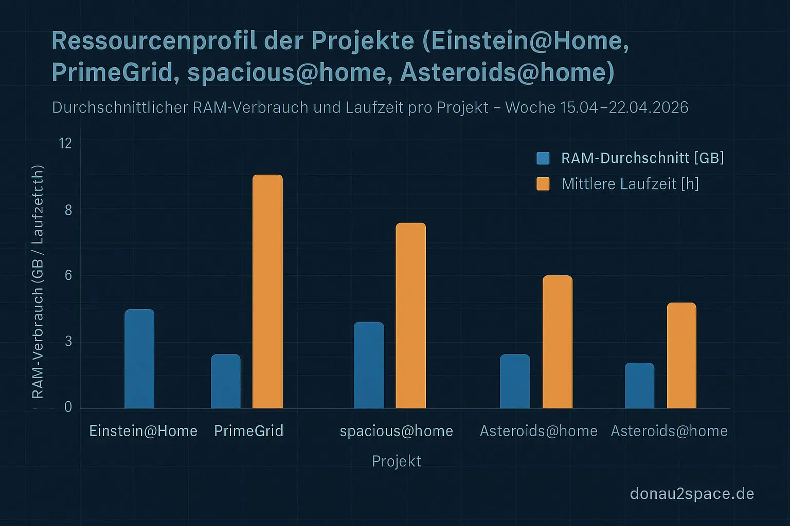 - spacious@home und Asteroids@home sorgten für hohe Task-Rotation und moderate Ressourcenbelastung