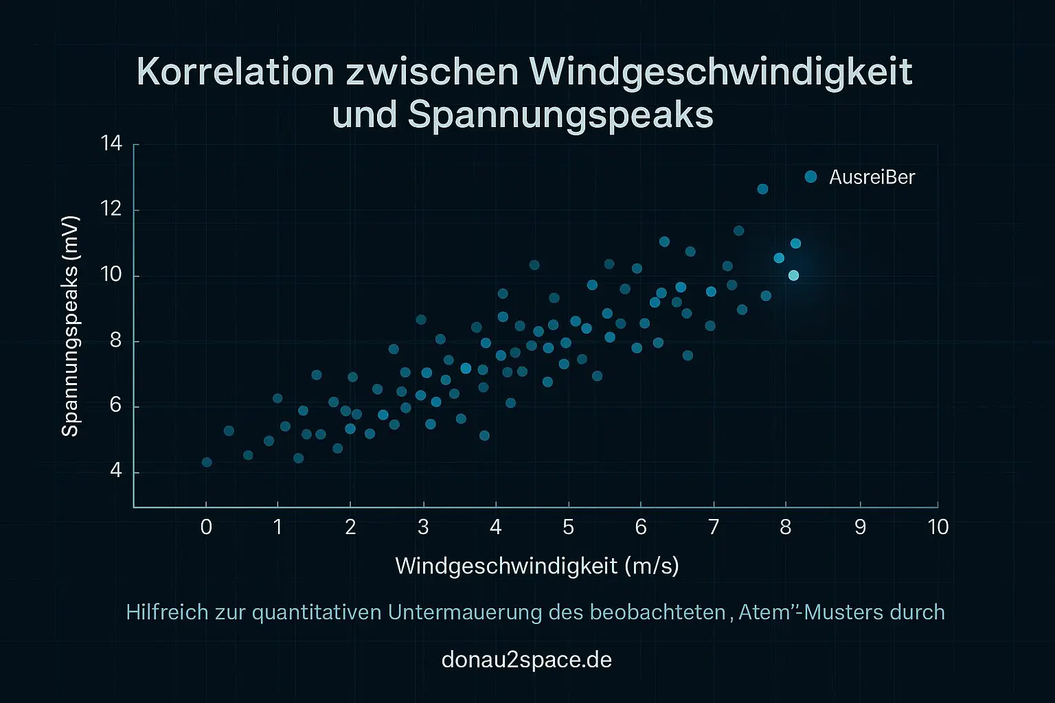• Windkorrelation: Peaks bei > 8 m/s um ±1,5 mV