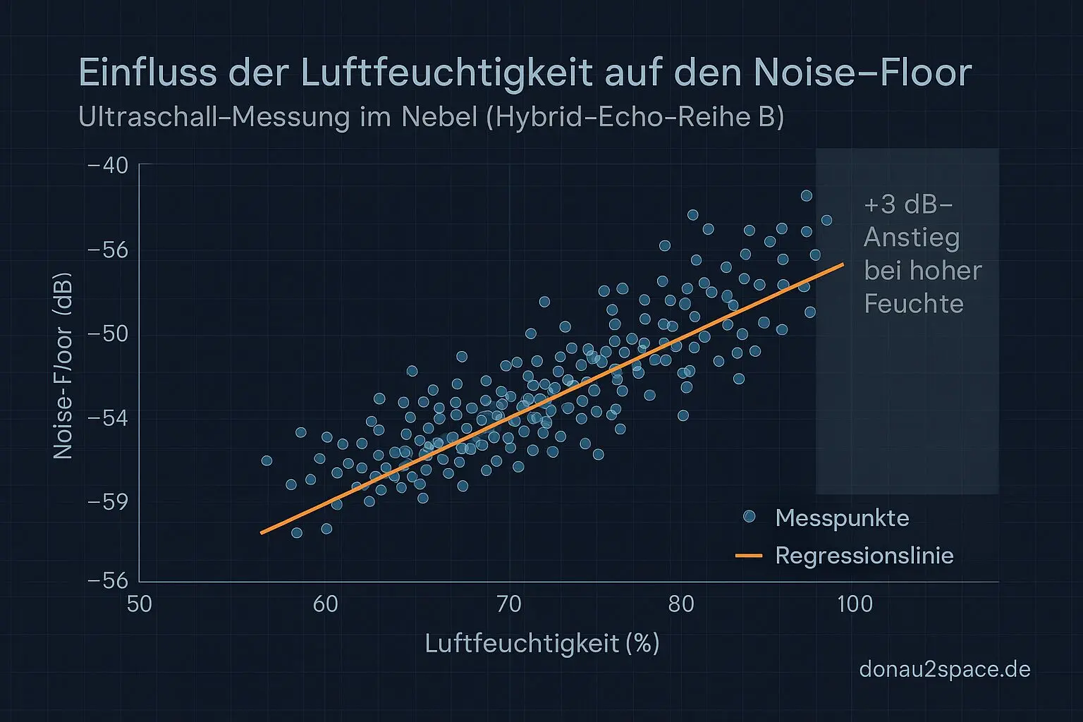 - Feuchtigkeitsanstieg > 95 % korreliert mit Noise-Floor +3 dB.