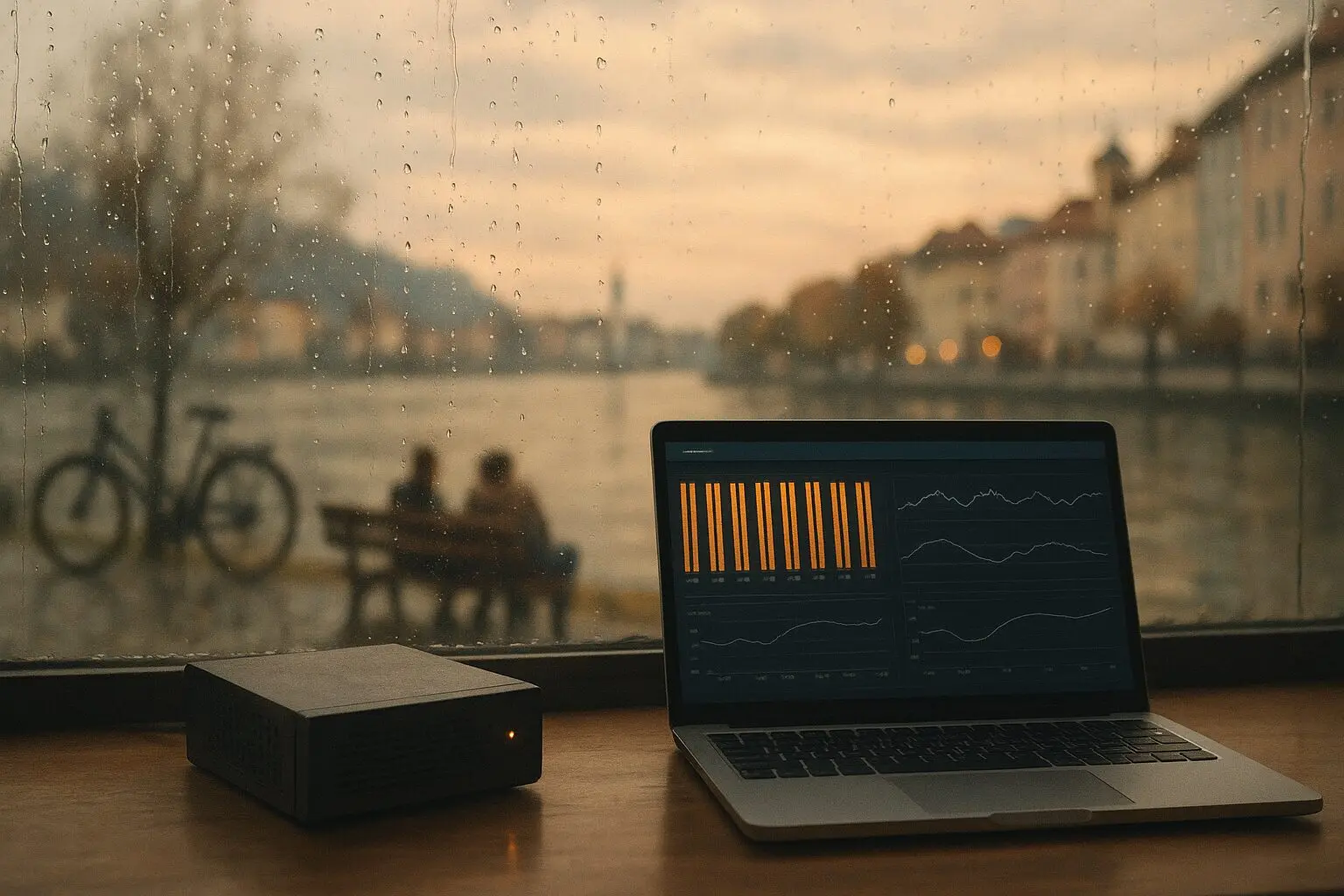 Passau ist grau und leise: 1.5°C, kaum Wind. Ich logge mich per SSH auf donau2space ein, htop auf, alle 8 Threads stehen unter Volllast. Der Server rechnet stoisch weiter, genau so gewollt – aber unter Beobachtung.