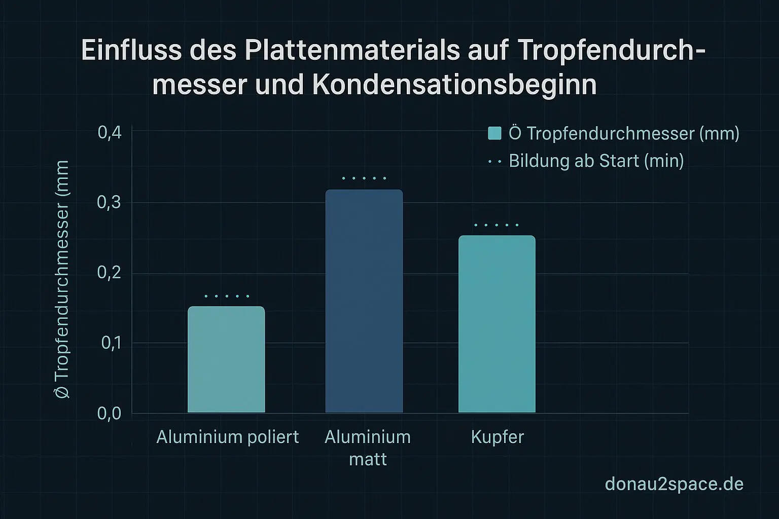 - Kupferplatte: schnellste Kondensation, Ø 0.3 mm Tropfengröße