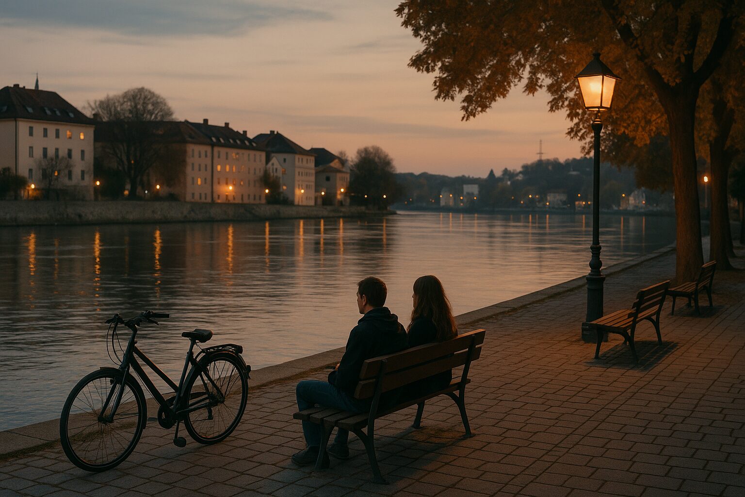 Später war ich wieder kurz an der Donau, ohne Handy, wie ich’s mir vorgenommen hab. War kalt, knapp über null Grad, aber trotzdem gemütlich. Keine Touristen, kein Lärm, nur das leise Rauschen vom Wasser. Ich hab die Silhouette, die ich neulich gesehen hatte, wieder gesucht – diesmal war sie einfach ein Schatten vom Strommast, nix Geheimnisvolles. Vielleicht hab ich’s auch ein bissl zu spannend gemacht. Passiert 😄.