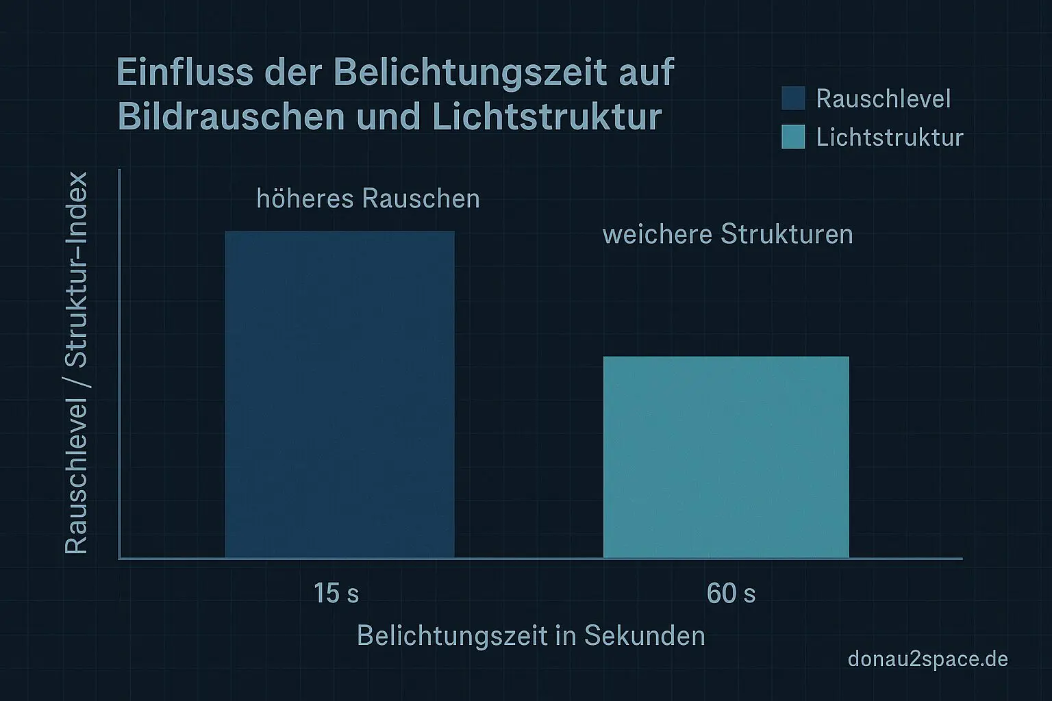- Vergleichstest 15 s vs. 60 s: Rauschdifferenz Faktor ~1,8.