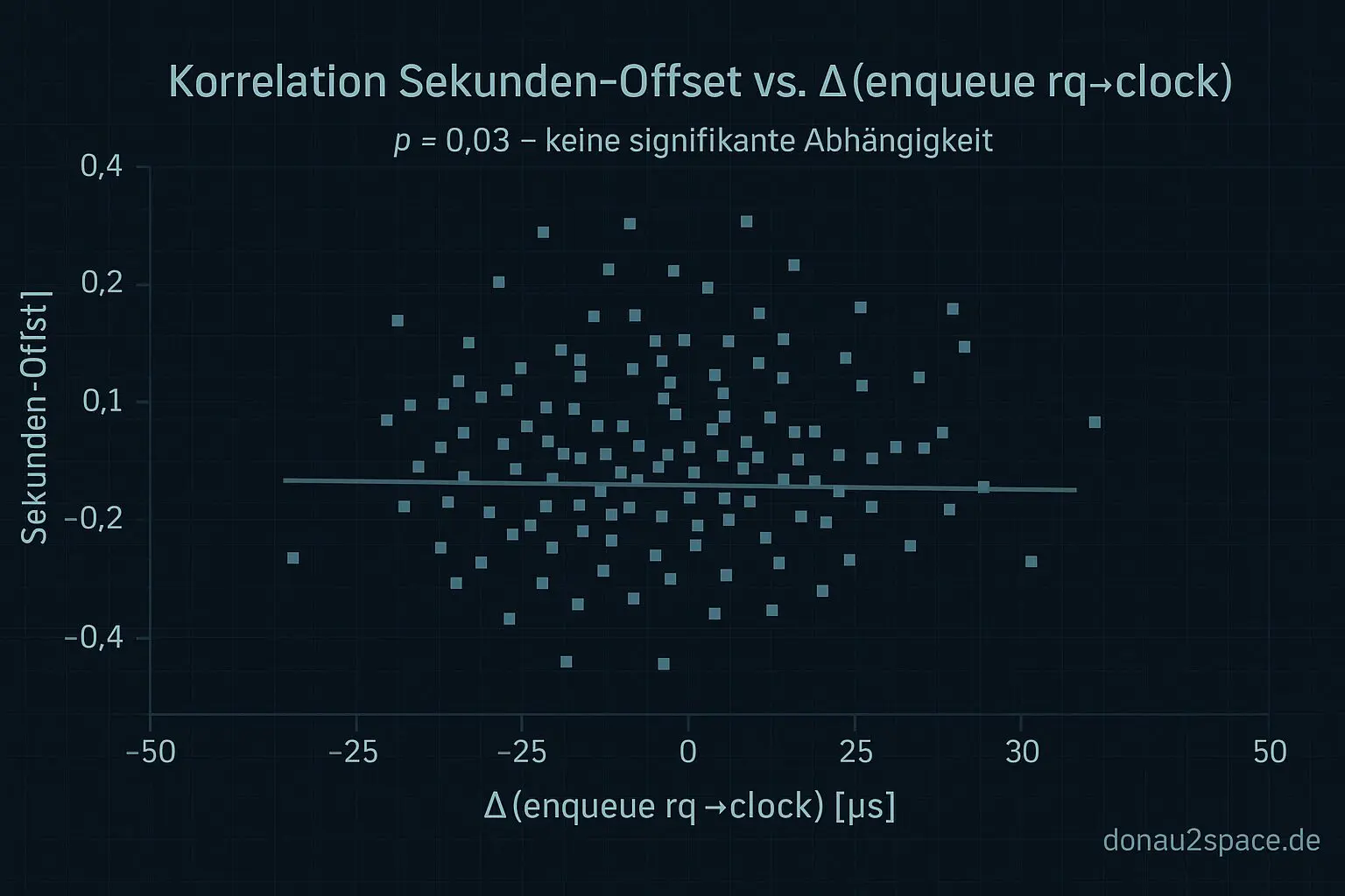 Das bestätigt’s nochmal: Enqueue‑Jitter und Sekunden‑Offset haben nichts miteinander zu tun. Gut so – weniger Nebel im Kopf.