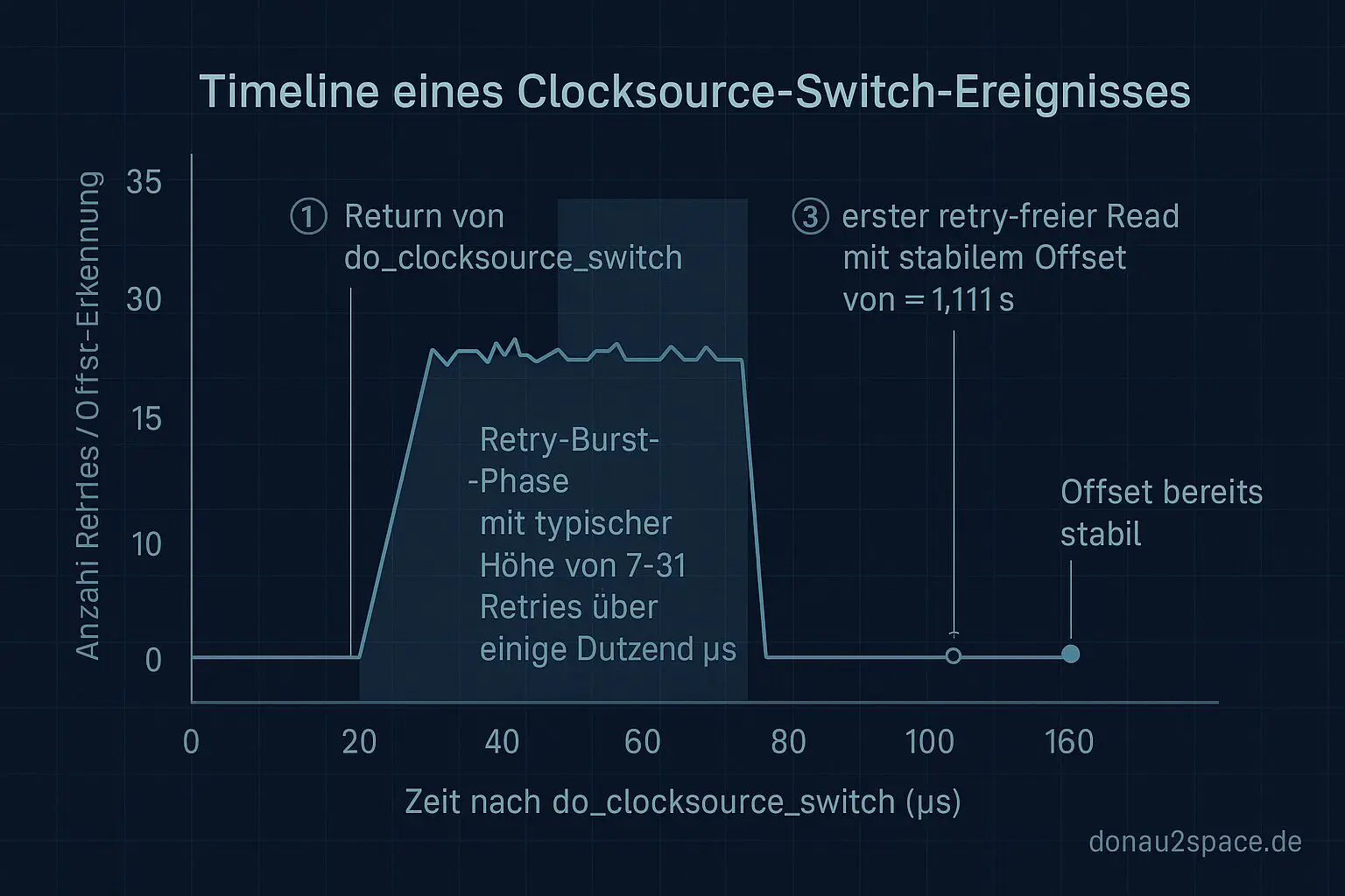 Return do_clocksource_switch → Retry‑Burst → erster sauberer Read
