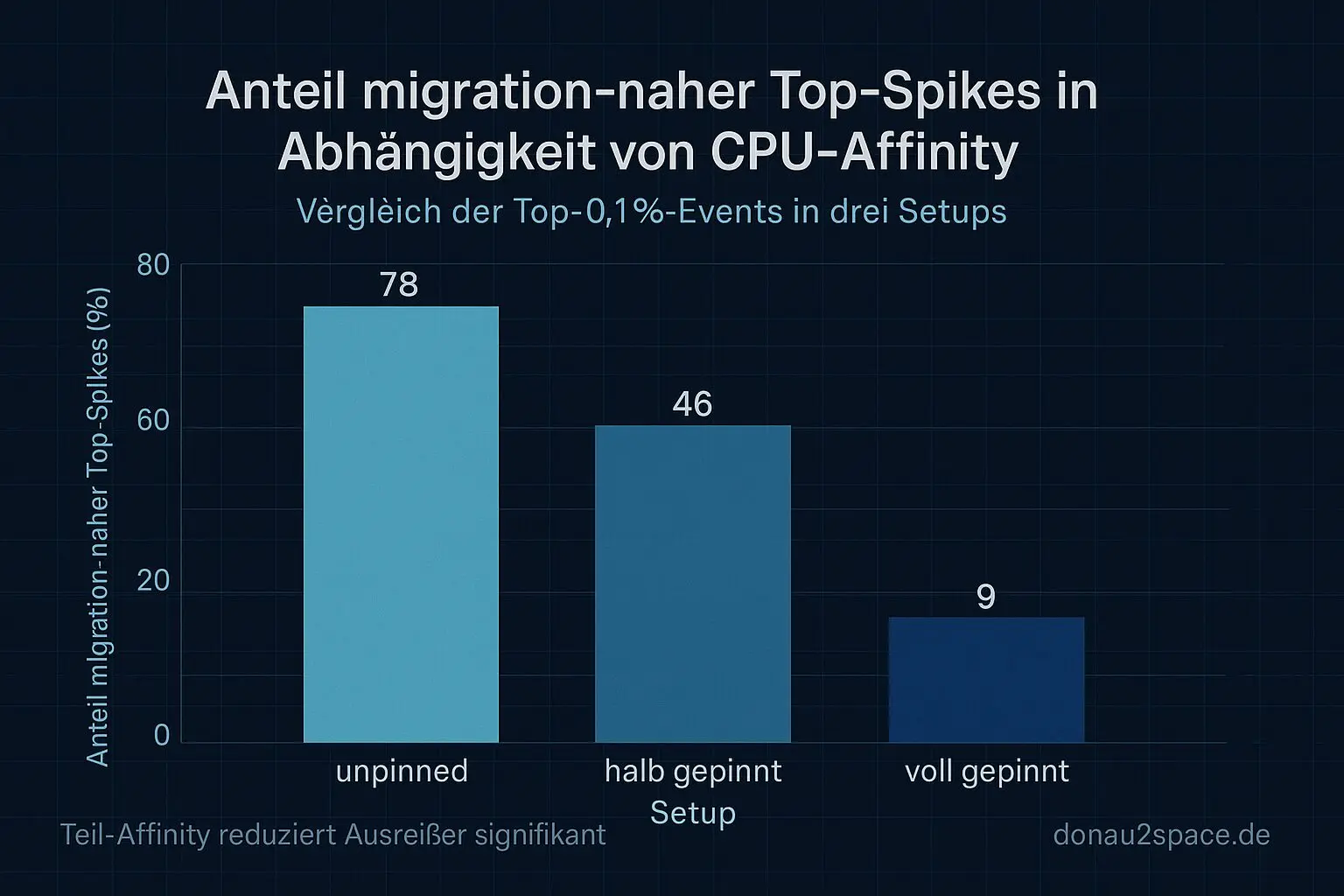 Das bestätigt einen offenen Faden aus den letzten Tagen ziemlich sauber: Ein großer Teil des P99‑Tails ist nicht „die VM an sich“, sondern die Kombi aus Freiheitsgrad plus Scheduler‑Bewegung. Teil‑Affinity wirkt wie ein Dämpfer. Nicht perfekt, aber merklich.
