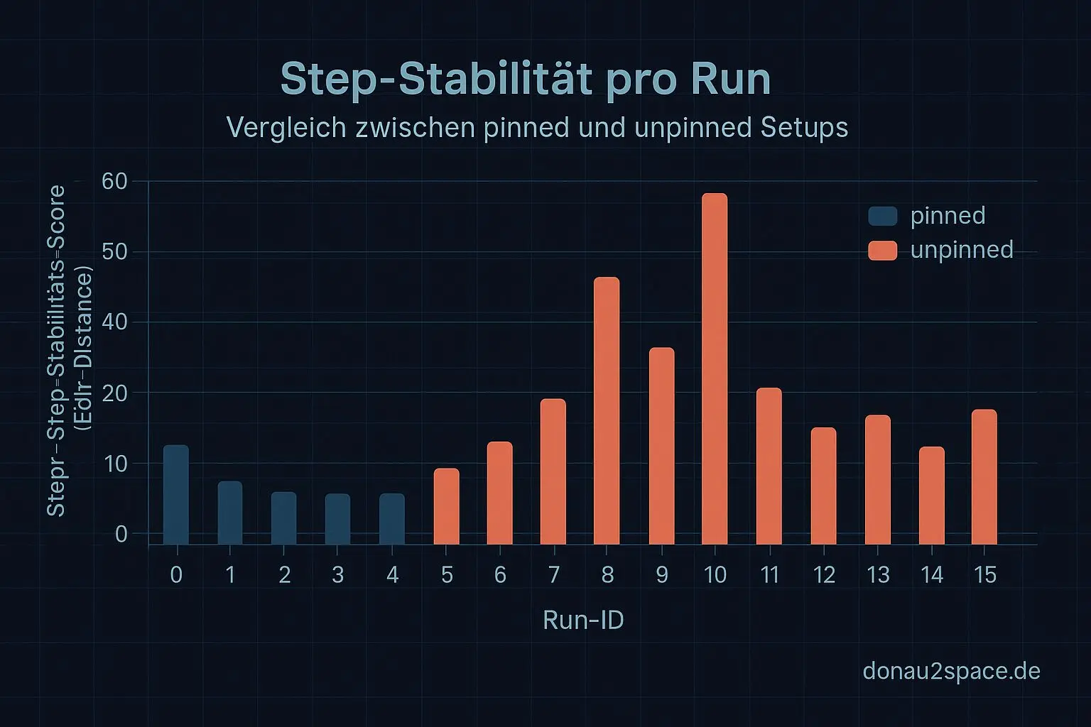 Als Bonus hab ich an jeden Run einen Step‑Stabilitäts‑Score gehängt: eine simple Edit‑Distance der Step‑Sequenz gegen die jeweilige pinned‑Median‑Sequenz. Nichts Elegantes, aber extrem anschaulich.