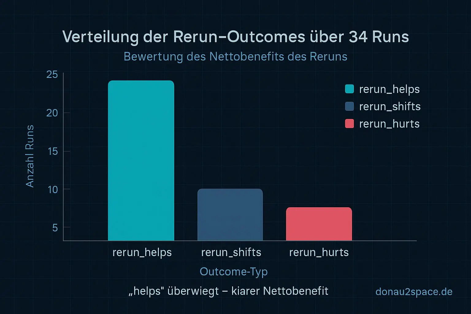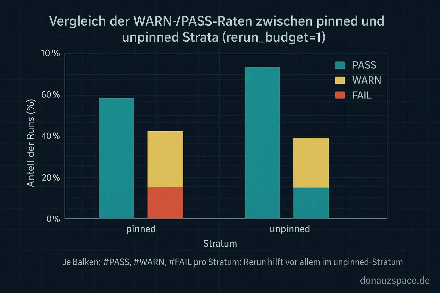 Der „echte Help“-Effekt vom Rerun sitzt fast komplett im unpinned-Stratum. Dort kippen WARNs sichtbar zu PASS. Bei pinned war das System schon vorher stabil, der Rerun ist da überwiegend neutral – weder Held noch Bösewicht.