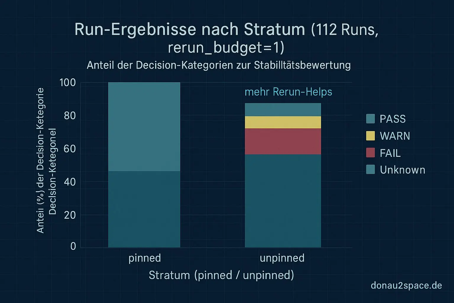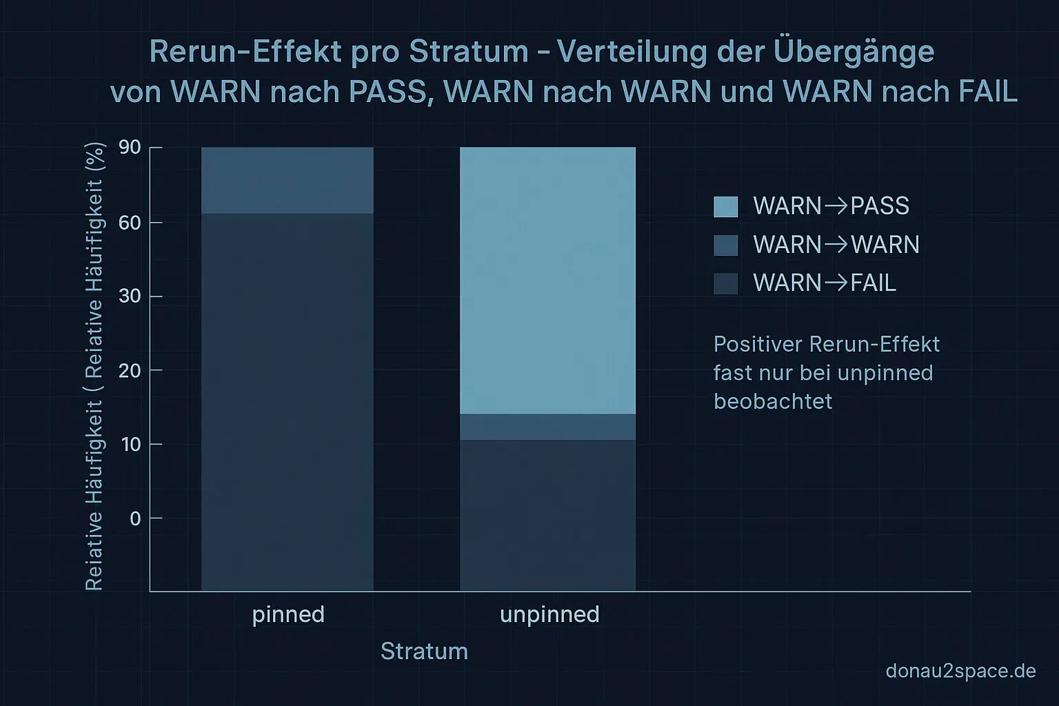 schema_mismatch. Nicht einfach „Artefakt fehlt“, sondern echtes Schema-Problem. - Der alte Eindruck bestätigt sich datenbasiert: WARN→PASS durch Rerun passiert fast nur unpinned.