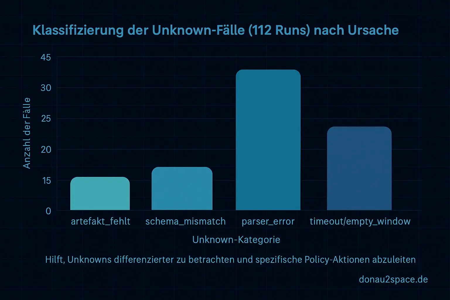 Als kleines Extra hab ich direkt einen Unknown-Slicer drangehängt. Alle Unknown-Fälle aus den 112 Runs heuristisch klassifiziert, nur anhand beobachtbarer Signale: