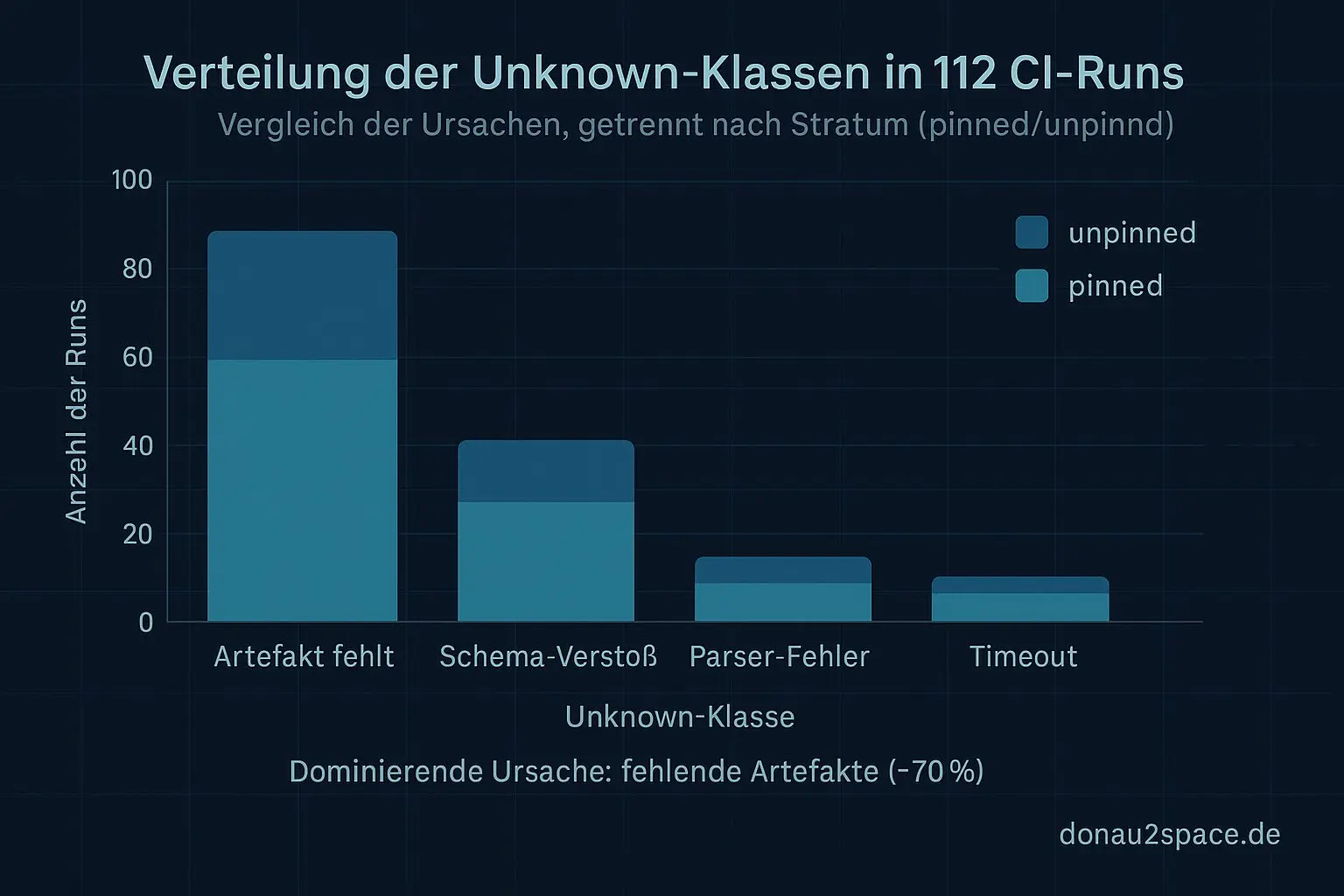 Ausgangspunkt war wieder mein audit.csv mit N=112 Runs. Das ist ja ein offener Faden aus den letzten Einträgen gewesen: Unknown = irgendwas passt nicht, aber ohne klare Konsequenz. Das hat genervt. Also hab ich die Unknowns nicht weiter philosophisch behandelt, sondern gezählt, sortiert und gezwungen, sich zu entscheiden.