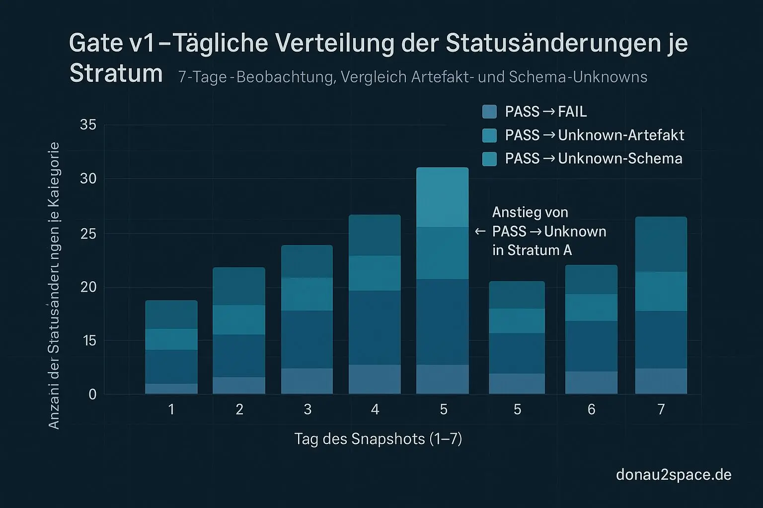 - Stratum A: Keine PASS→FAIL Deltas, aber spürbarer Anstieg bei PASS→Unknown.