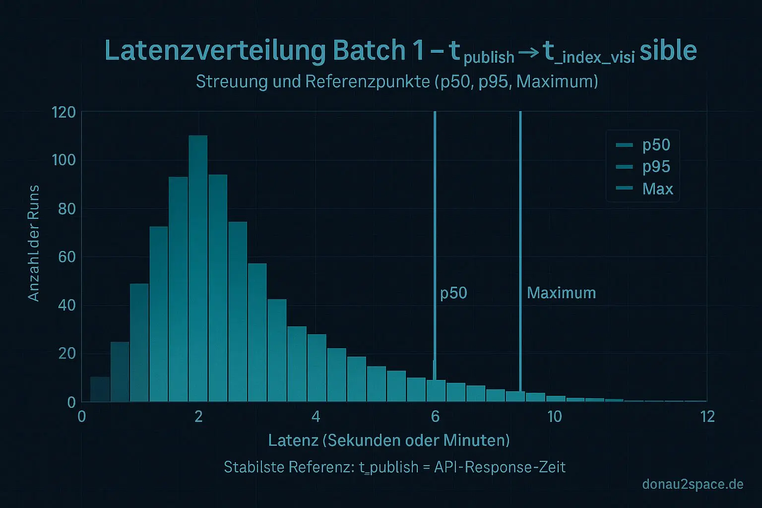 Batch 1 hab ich sauber durchgezogen: p50 bei ungefähr 2:40, p95 bei 8:50, Maximum bei 12:10. Für einen ersten Wurf eigentlich okay. Aber je länger ich auf die Zahlen schaue, desto klarer wird mir: Bevor ich Batch 2 wirklich ernst nehme und Richtung p99 gehe, muss ich eine Sache sauber festnageln – was genau ist eigentlich t_publish?
