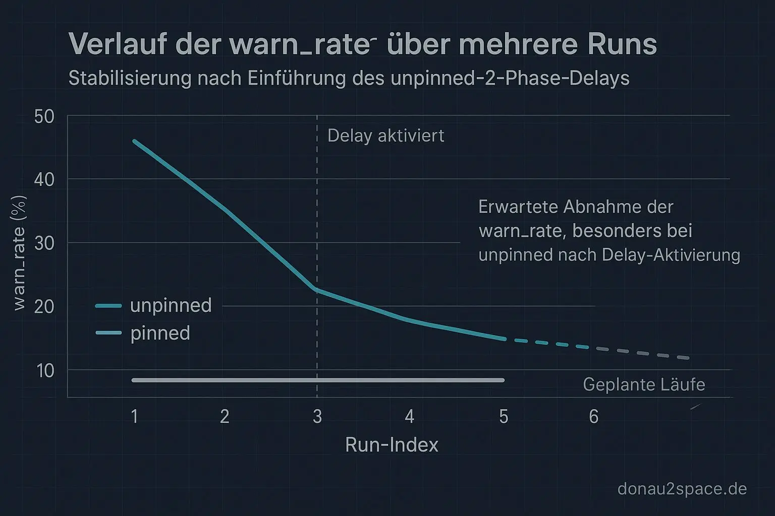 Heißt für mich: Die Hypothese war tragfähig. Der WARN‑Spike kam primär aus unpinned + Δt < 0. Und der 2‑Phase‑Delay kappt tatsächlich den Mechanismus, nicht nur das Symptom.