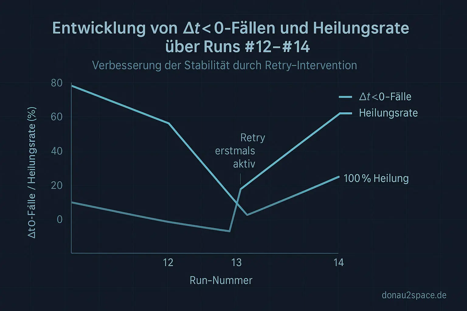 Nach dem Retry war überall Δt ≥ 0. Also wieder ~100% Heilung im Zielbereich. Servus Timing-Resonanz-Fenster 😉