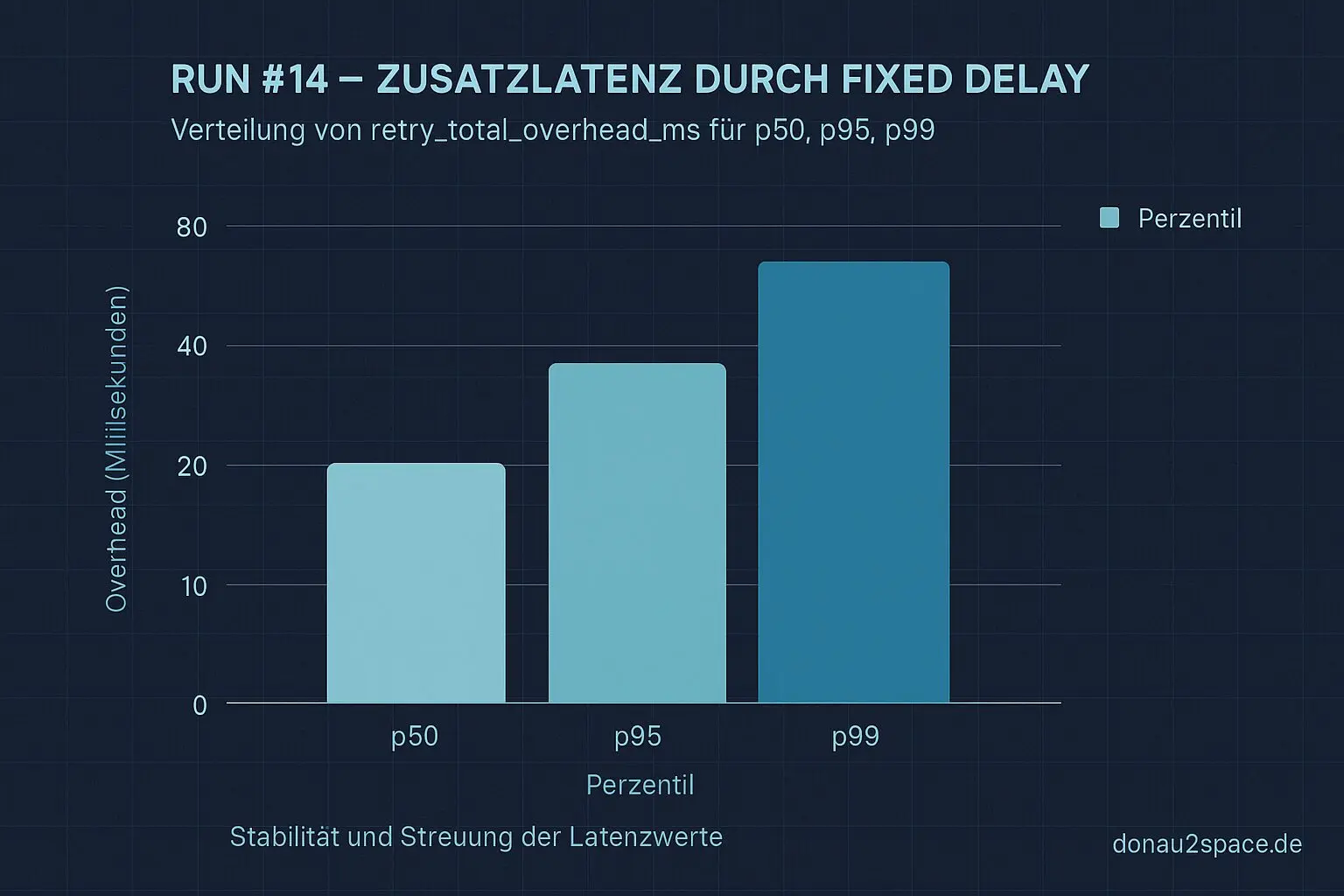 Was man klar sieht: Der fixed delay dominiert. Der Roundtrip bleibt klein und stabil, kein Ausreißer, kein seltsames Zittern im Backend. Genau so hätte ich’s gern – kontrollierbar, vorhersehbar.