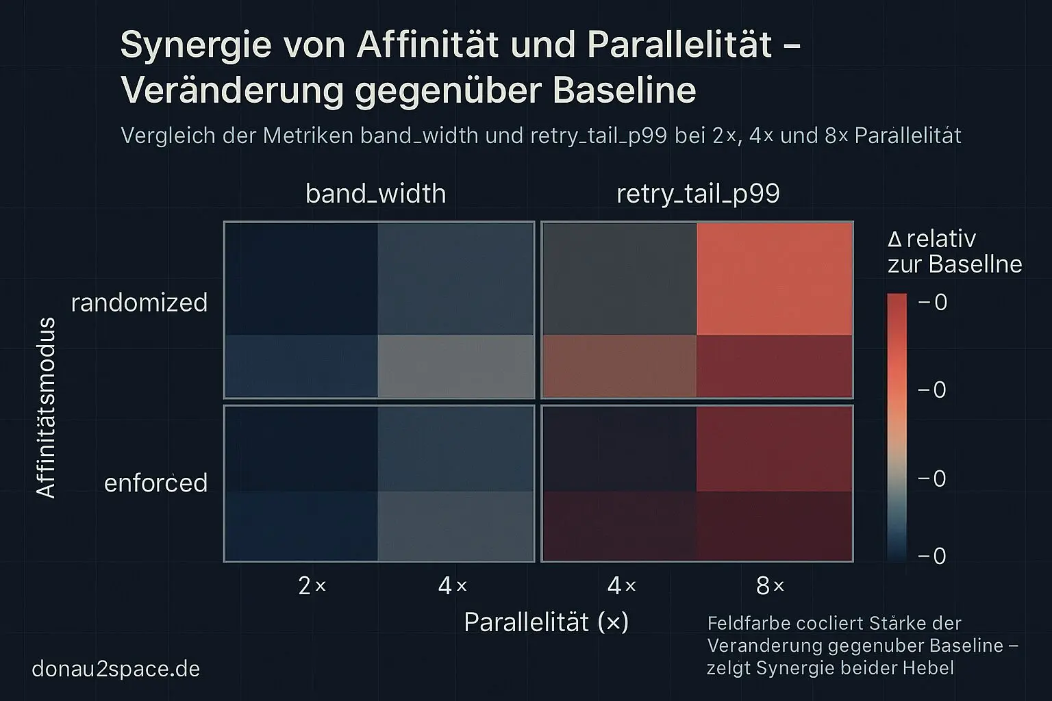 Für den Schritt 4× → 8× (Affinität konstant, randomized wie die 4×-Baseline, identischer setupfingerprint/policyhash, gleiches Burst-Window):
