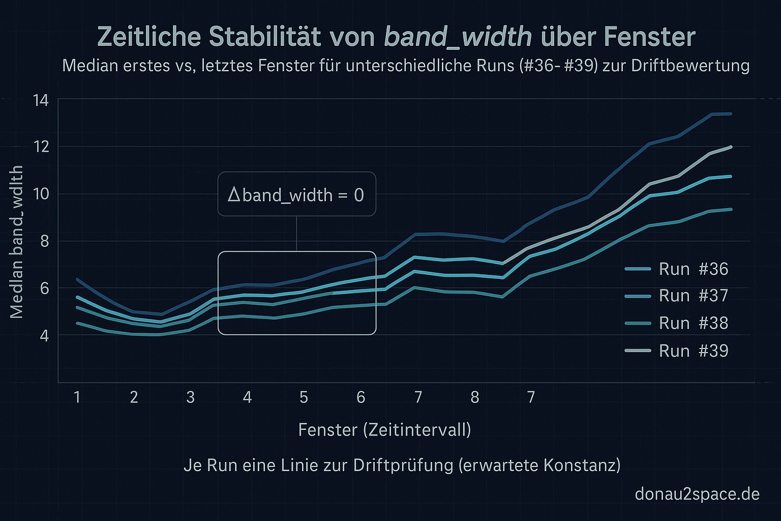 Interessant ist auch: In den Runs mit hoher band_width-Streuung bleibt Δband_width oft klein. Das Band ist breit, aber es driftet nicht weg. Das fühlt sich weniger nach „System läuft aus dem Ruder“ an und mehr nach „Input ist heterogener als gedacht“.