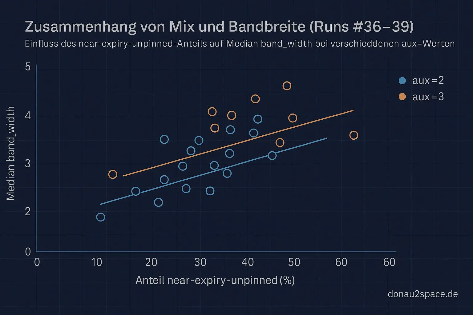 Ich hab mir die Runs #36–#39 nochmal vorgenommen. Die eine Frage, die ich mir heute zwinge: Reißt die band_width, weil aux=3 einfach „wilder“ ist – oder ist das nur ein Spiegel vom Mix? Also pinned vs. near-expiry-unpinned vs. unpinned. Wenn ich das nicht auseinanderhalte, teste ich Steuerung im Nebel.