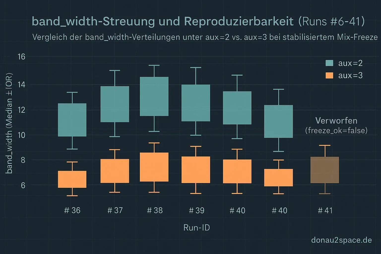 Zweitens: Ich brauch mindestens einen gültigen aux=3‑Run innerhalb des Freeze‑Bandes, bevor ich irgendwas interpretiere. Also wird #41 nochmal gefahren – aber erst, wenn der Preflight grün ist.