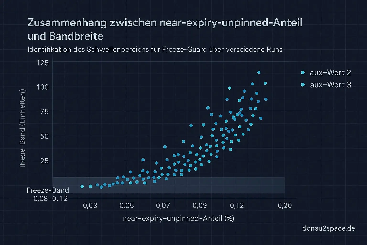 - Das Mix-Freeze-Band ist ein definierter Wertebereich (0,08–0,12) für den near-expiry-unpinned-Anteil, innerhalb dessen Runs gültig sind.