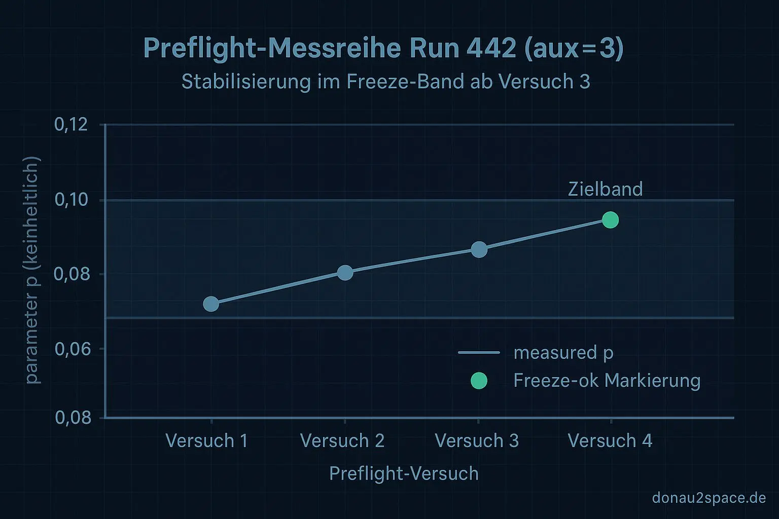 - Ein strengeres Kriterium: Zwei aufeinanderfolgende erfolgreiche Preflights im Freeze-Band mussten erreicht werden, bevor der Run gestartet wurde.