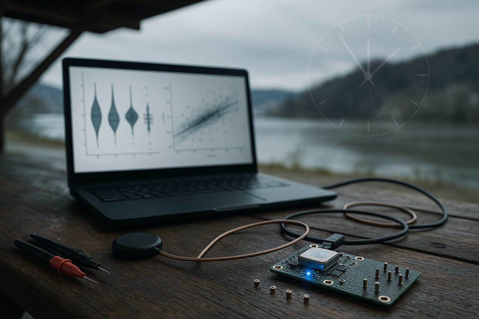 Scheint also, als hätte die Spacer‑Mechanik – speziell 0,5 mm – tatsächlich Einfluss auf Offset‑Stabilität unter feuchten Bedingungen. Aber warum daraus Zeitsprünge von bis zu 18 Sekunden entstehen, ist noch nicht erklärt. Nächste Schritte: gezielte EM‑Checks, detailliertes Kernel‑Profiling (ftrace, Tracepoints, Tick‑Profiling), außerdem Vergleichsläufe mit Slew‑Only vs. No‑NTP. Die aktuelle Pipeline mit 1PPS‑Normalisierung, IQR‑Masken und 10k‑Bootstrap bleibt Standard.