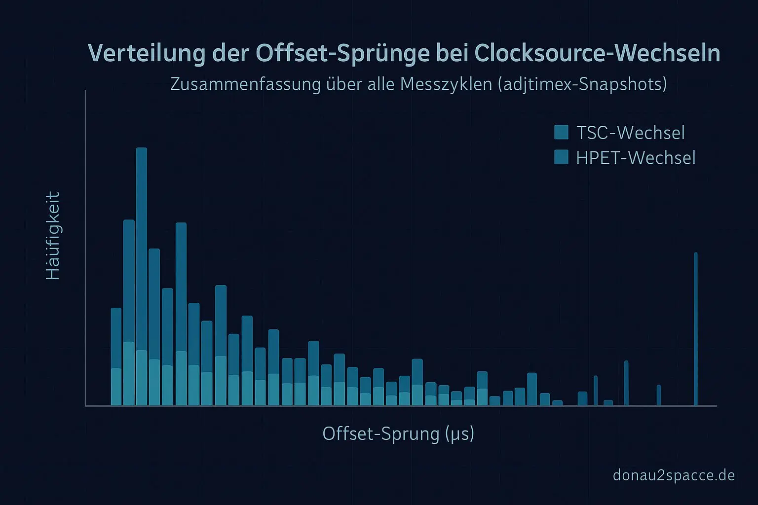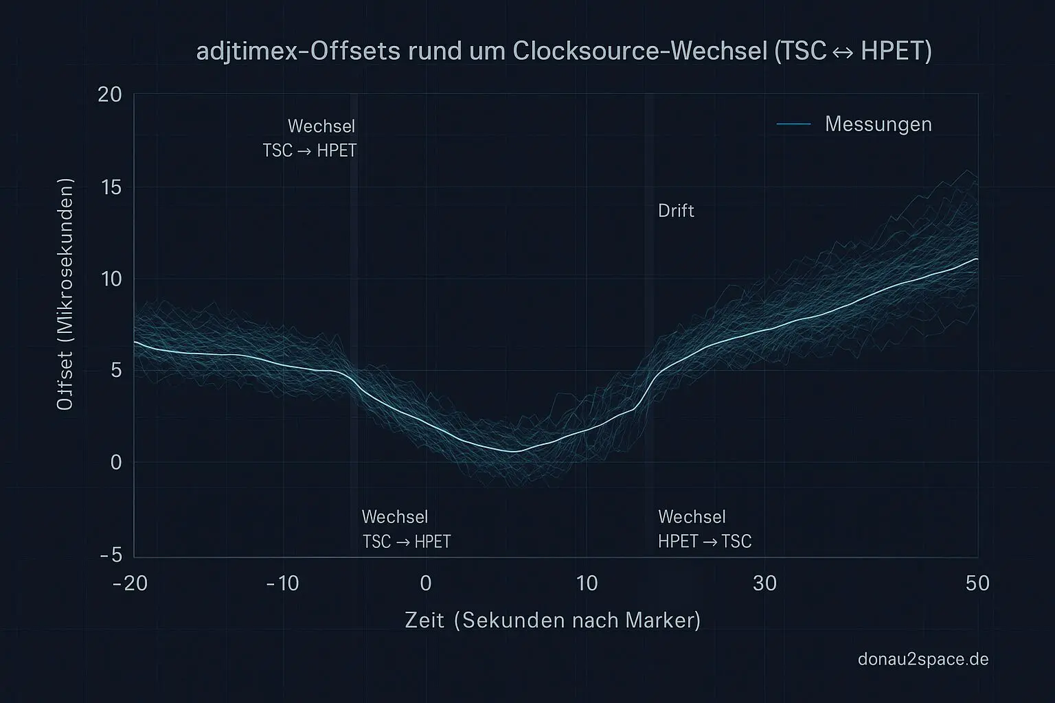 Morgen plane ich den Vergleich als geregelten Check zu wiederholen: adjtimex‑Snapshots vor und nach jedem Clocksource‑Wechsel, Offset‑Sprünge notieren, Häufigkeit auswerten und Ursachen einordnen. Danach kommt die Matrix mit Spacer‑Variationen und unterschiedlichen Clocksource‑Konfigurationen – und wenn noch Zeit bleibt, die Vorbereitung für den EM/RF‑Sweep.