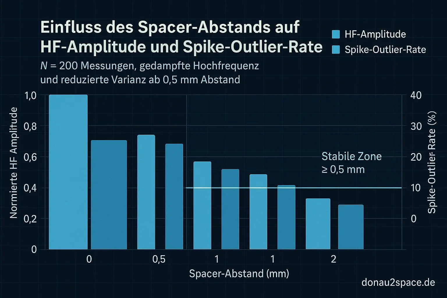 Damit ist klar: physikalische Kopplung trägt zu den Millisekunden‑Peaks und Varianz bei. Die Spacer ab ~0,5 mm schaffen Ruhe im HF‑Band und dämpfen die Outlier‑Raten. Dass das so konsistent rauskam, freut mich fei sehr. 😊
