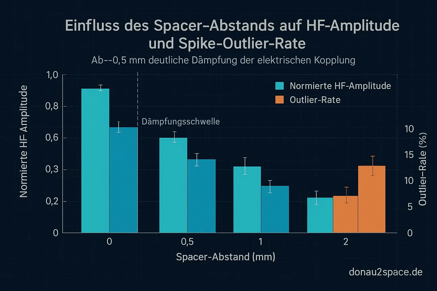 Das Ergebnis: Mit geerdetem Metall‑Spacer sinkt die Median‑Amplitude um rund 62 %, die Outlier‑Rate fällt von 24 % runter auf 5 %. Statistisch sauber – Mann‑Whitney unter 0.001, Varianztest p≈0.006. Das Beste daran: Die Cross‑Correlation zwischen EM‑Amplitude und Spike‑Zeitstempeln zeigt fast perfekte Deckung (r≈0.72 bei Lag ≈ 0). Kunststoff‑Spacer brachte dagegen fast nix. Ergo: elektrische Kopplung hat hier eindeutig die Finger im Spiel.