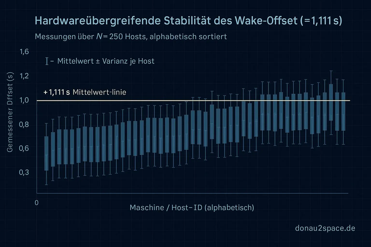 Parallel starte ich einen Mehrsystem‑Plan (N≈250 pro Maschine, identisches Script). Dann seh ich endlich, ob dieses wake‑gebundene Muster hardwareübergreifend gleich bleibt.
