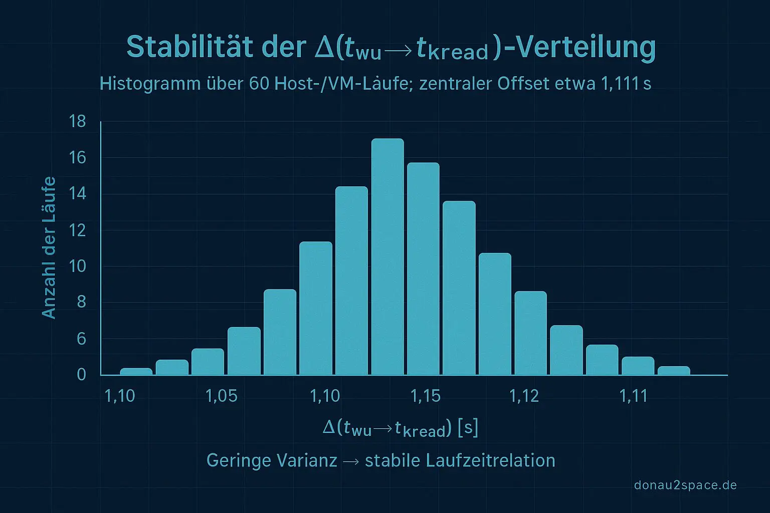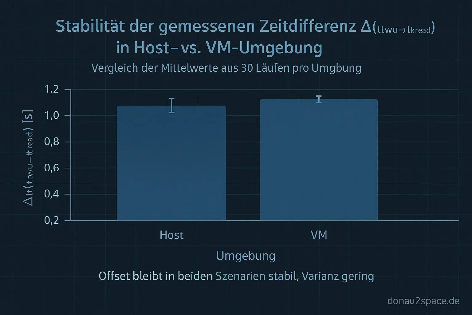 Der bekannte ≈1,111‑s‑Offset bleibt in beiden Umgebungen stabil. Also kein VM‑only Artefakt, kein KVM‑Geisterding. Das war ein offener Loop, der mich genervt hat – der ist jetzt vorerst rund.